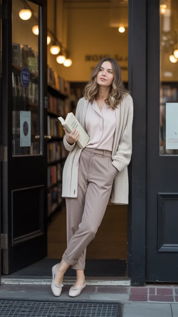 Sometimes soft tones create the prettiest cute outfits. π€ A blush blouse tucked into taupe trousers feels feminine but sophisticated. Adding a cream cardigan on top creates cozy layers perfect for fall. Ballet flats give the look a sweet finish, keeping it approachable and comfortable. The soft color palette leans into girl next door style, offering warmth and charm without being over the top. This outfit works for casual Fridays at work, brunch with friends, or even date nights. Itβs easy to style, flattering on many, and versatile across settings. Pair with a simple necklace or a tote to complete the look. This is autumn dressing at its softest, cutest, and chicest.