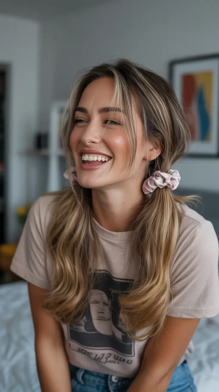 Scrunchies are not just functional; they also serve as a stylish accessory. They come in various colors and patterns, allowing for personalization. Whether you choose bold colors or soft pastels, scrunchies can enhance your look while keeping your hair secure. This combination of layers and scrunchies makes for a trendy yet effortless hairstyle that can be rocked by anyone.