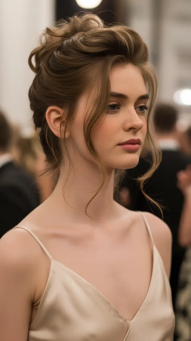 The loose tendrils frame the face perfectly, giving a relaxed yet elegant vibe. This style is ideal for various occasions, whether it’s a casual day out or a special event. The volume and texture of the hair bring a nostalgic feel, reminding us of the iconic hairstyles from the past.