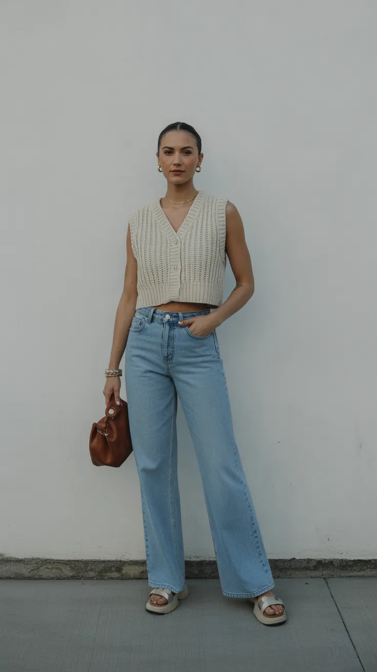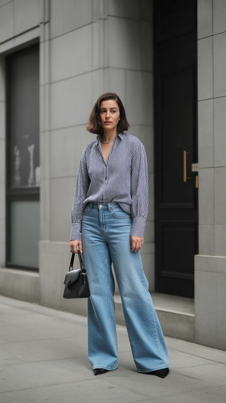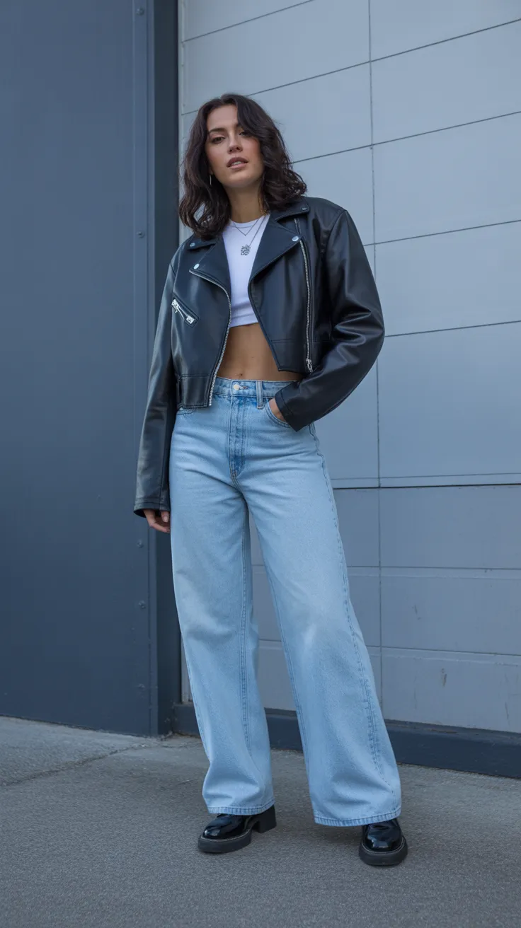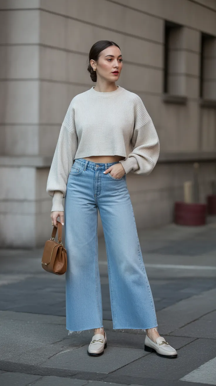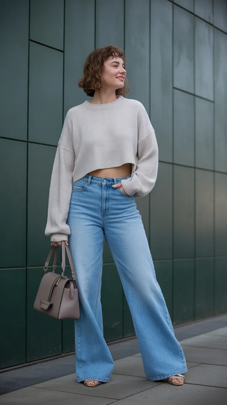 Wide-leg jeans paired with a cropped top create a fun and stylish look. This combo is perfect for casual style outfits, making it easy to dress up or down. Whether you’re heading out with friends or just enjoying a day out, this outfit looks chic and feels comfortable.