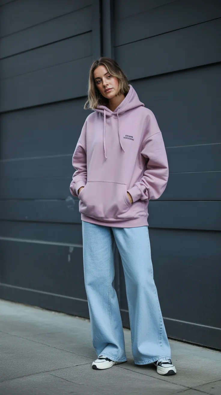 Baggy jeans paired with a cropped sweatshirt make for a stylish and comfy look. This outfit is perfect for casual style outfits that still feel chic and put together. It’s a go-to choice for teen fashion outfits, blending comfort with modern trends effortlessly.