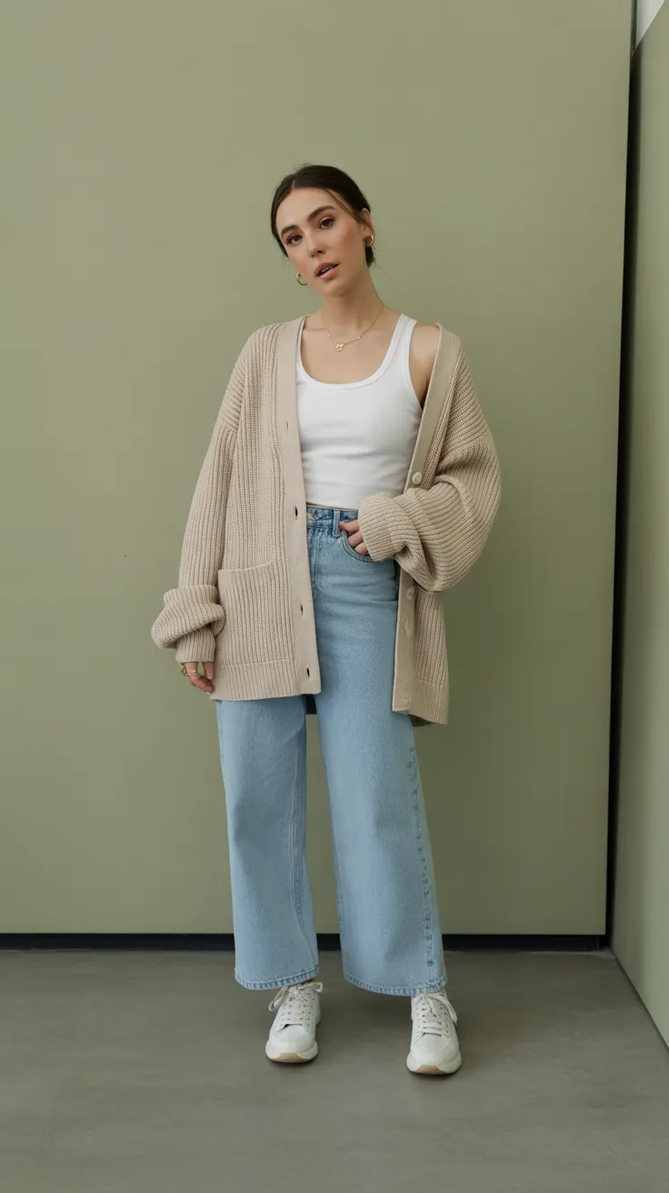 Straight-leg denim paired with a neutral tank is a go-to for casual style outfits. This look is easy to wear and always looks chic, making it perfect for any outing. Whether you’re heading to class or meeting friends, this outfit is a staple in teen fashion outfits.