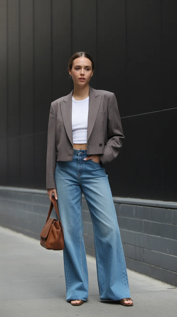 Baggy jeans paired with a cropped structured blazer create a perfect blend of casual and chic. This look is ideal for teen fashion outfits, offering comfort while still looking stylish. Whether you’re heading to class or out with friends, this outfit is a go-to for effortless casual style outfits.