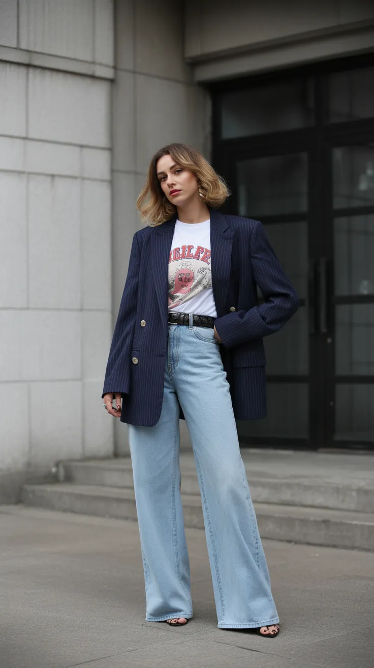 Straight-leg denim paired with an oversized blazer is a winning combo for casual style outfits. This look is perfect for those who want to keep it chic yet comfortable. Whether you’re heading to class or meeting friends, it’s a go-to choice for teen fashion outfits that look effortlessly stylish.