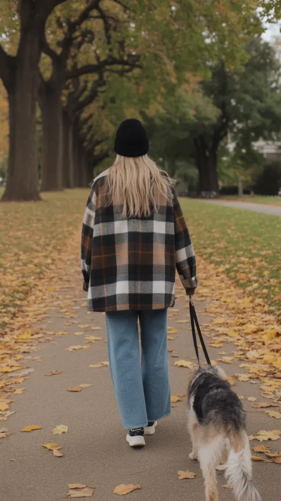 Sometimes fall is all about easy layering, and nothing says that better than a plaid shacket. Paired with wide-leg jeans and sneakers, it makes a relaxed but stylish autumn inspo outfit. The addition of a beanie gives it that playful, street-style edge. Itβs the type of look that works for farmerβs markets, weekend walks, or casual errands. If you want to elevate it slightly, trade the sneakers for chunky boots. Neutral tones keep it versatile, but donβt be afraid to play with earthy plaids for more seasonal charm. Add a canvas tote or backpack to complete the laid-back vibe. This outfit proves that casual outfits can still feel fashion-forward when styled with the right layers.