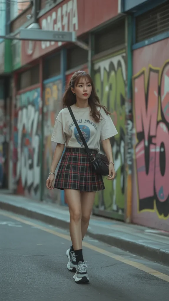 For a more playful vibe, a plaid mini skirt with a tucked-in graphic tee is a total go-to. It feels youthful and casual while still being on-trend. Pair it with chunky sneakers and a crossbody bag for easy movement. Add a bomber or denim jacket if the weather’s chilly. The plaid gives it that autumn feel, while the tee adds personality. This is a great weekend look for shopping trips or hanging out at a café. Accessories like layered necklaces or a baseball cap can make it even more fun. It’s the kind of mode casual outfit that feels effortlessly cool.