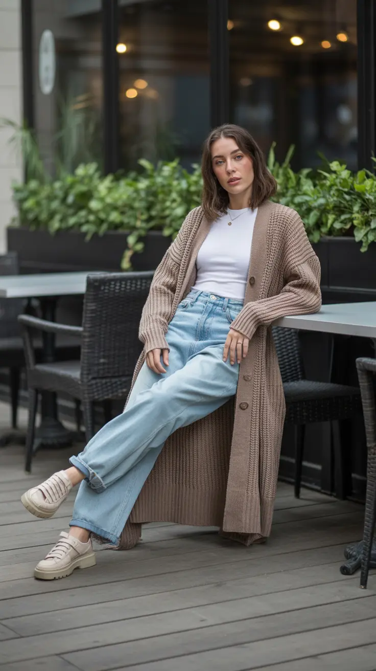 13. Long Cardigan with Baggy Jeans
