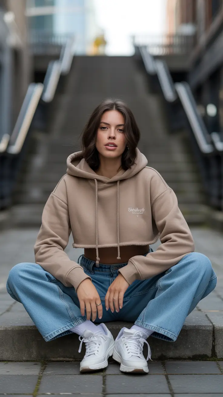 8. Cropped Hoodie with Baggy Jeans