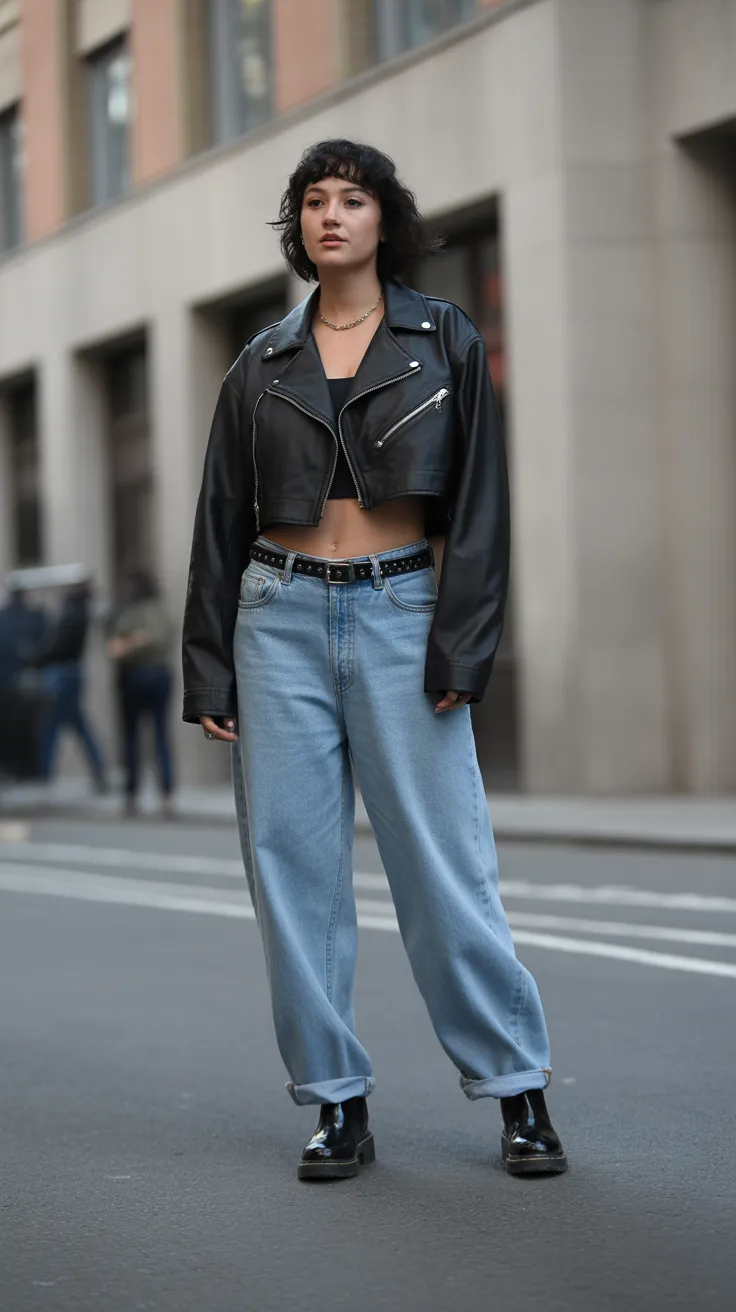 12. Baggy Clothes With Cropped Leather Jacket And Boots
