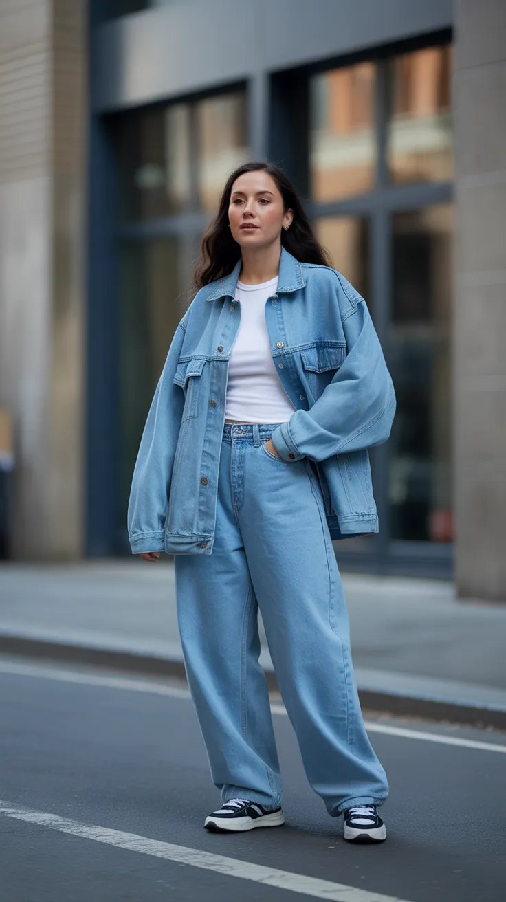 This look is a perfect blend of comfort and style. Pairing baggy jeans with an oversized denim jacket gives off a laid-back vibe that’s super trendy. Add some classic sneakers, and you’ve got a baggy outfit that’s effortlessly cool for any casual outing.