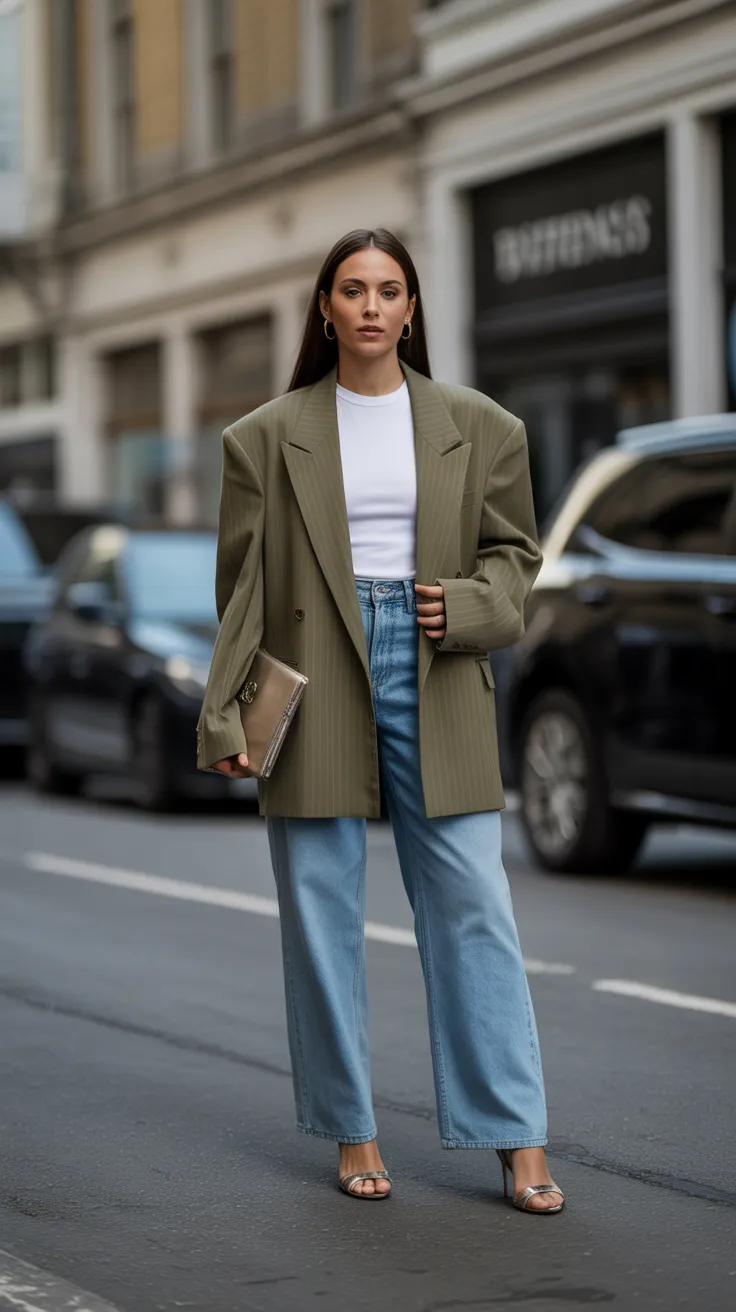 Baggy jeans are a fun way to mix comfort with style. Pairing them with an oversized blazer and heels creates a chic look that’s perfect for any occasion. This baggy jeans outfit is all about effortless vibes while still looking put together!