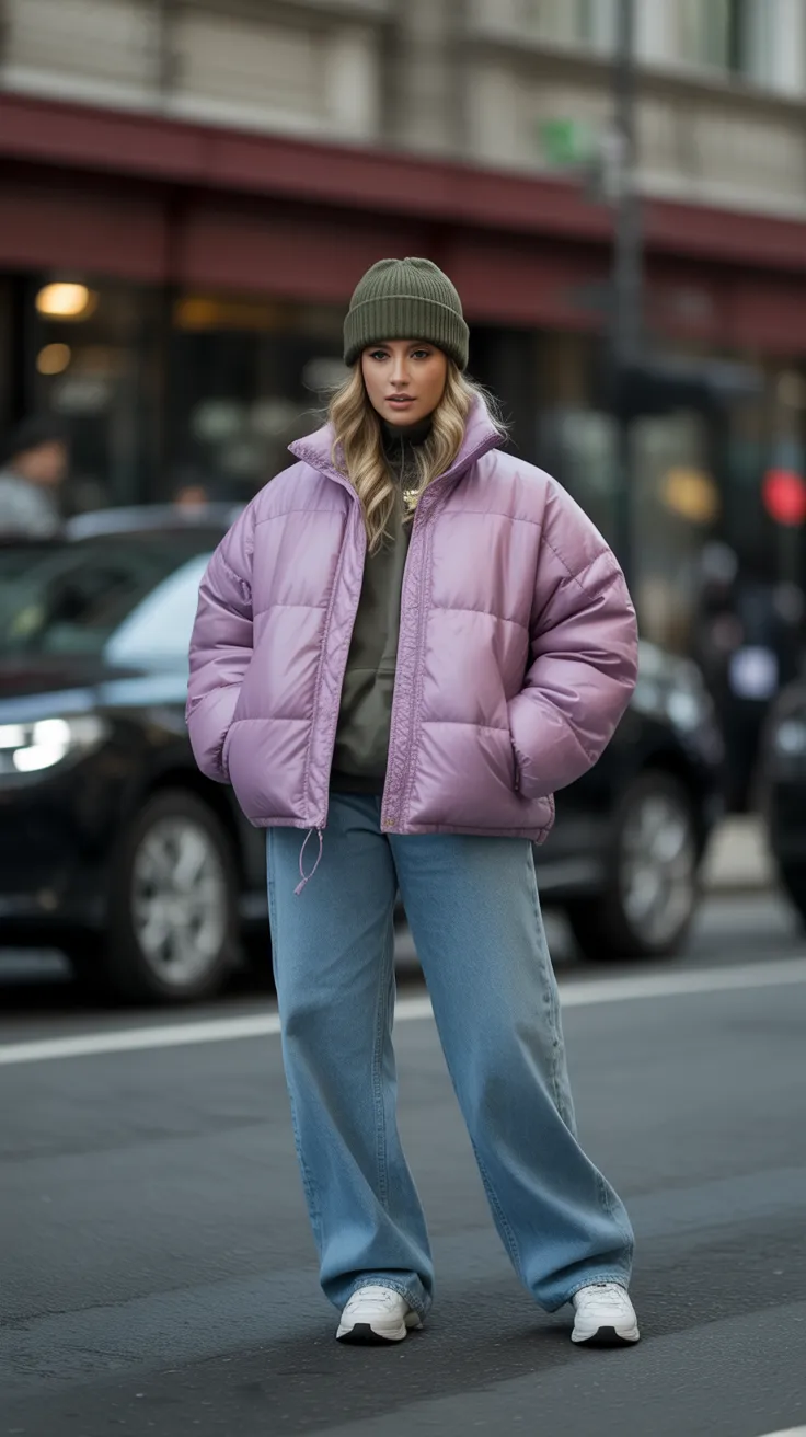 A baggy jeans outfit paired with a cozy puffer jacket and a cute beanie is perfect for chilly days. This look combines comfort and style effortlessly, making it a go-to choice for any casual outing. With baggy fits, you can enjoy a relaxed vibe while staying trendy and warm.
