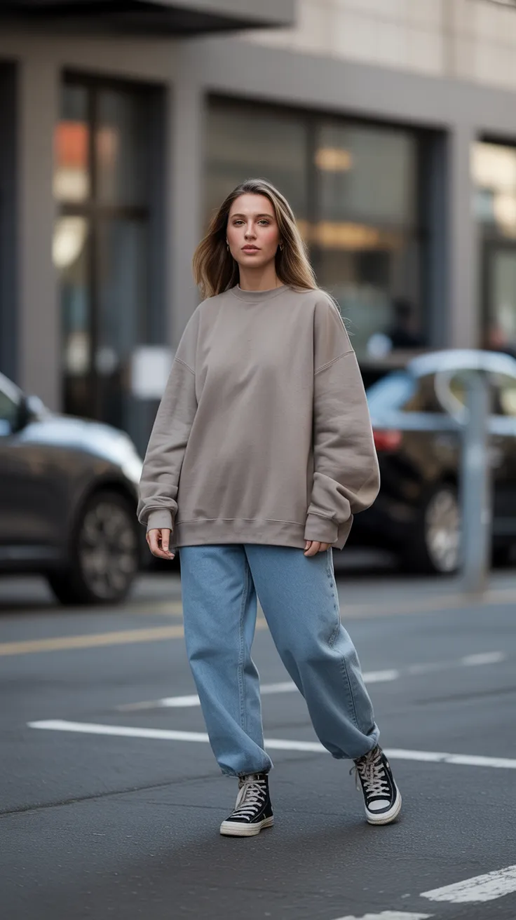 9. Baggy Outfit Idea With Oversized Sweatshirt And High-Tops