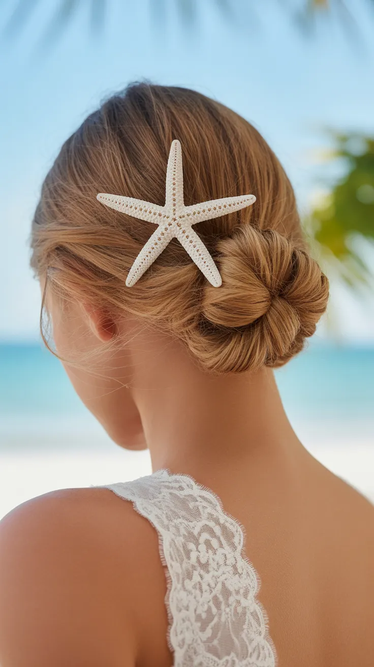 Adding a starfish clip elevates the look, bringing a touch of the ocean to your wedding hair. This accessory is not just pretty; it also ties in beautifully with a mermaid dress or any beach wedding attire. The starfish clip adds a whimsical element, making it ideal for a romantic seaside ceremony.