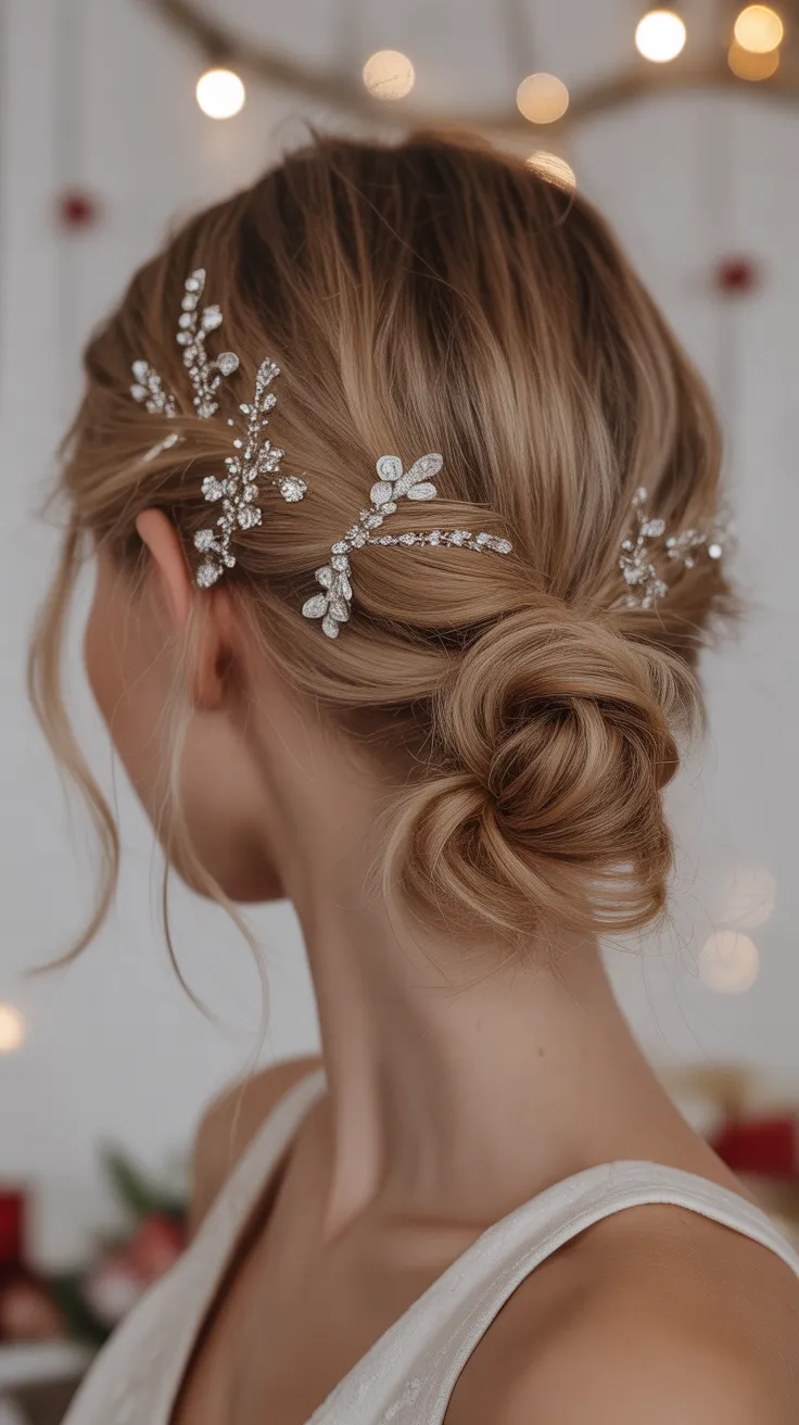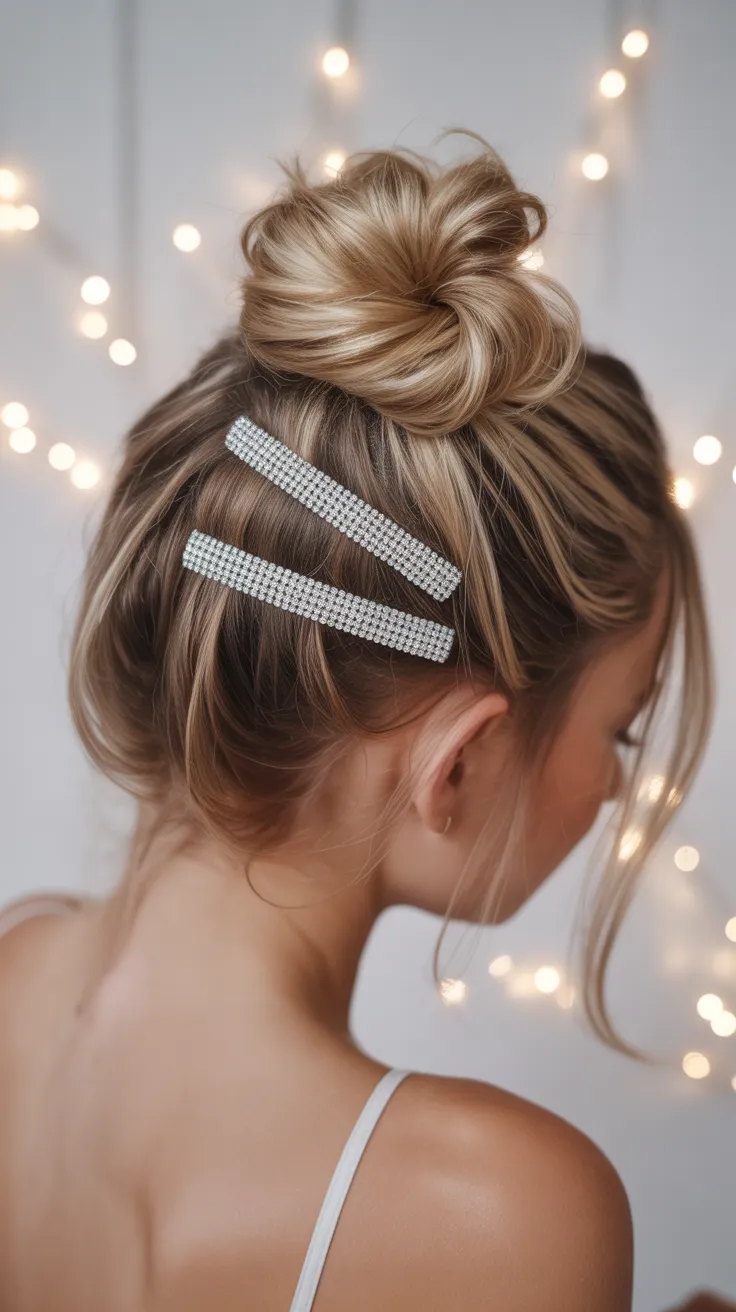 15. Top Knot Hairstyle With Sparkle Hair Pins