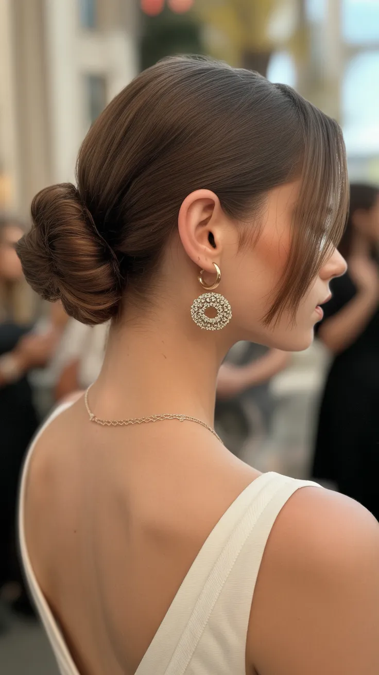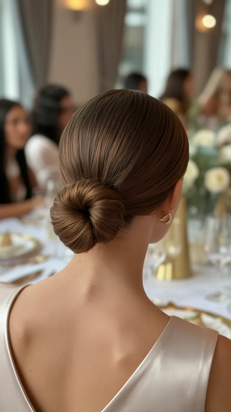 The smooth finish of the bun gives a polished look, making it perfect for both casual and formal birthday parties. You can easily dress it up with accessories like a hairpin or some delicate earrings, just like the beautiful model in the image.
