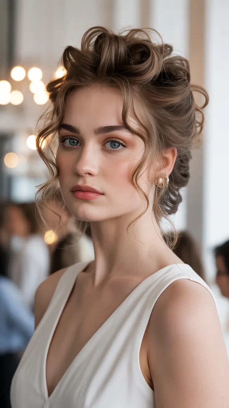 The high pinned curls hairstyle is a stunning choice for any birthday celebration. This look combines elegance and fun, making it perfect for a birthday party. The curls are pinned high, creating a beautiful volume that frames the face nicely.