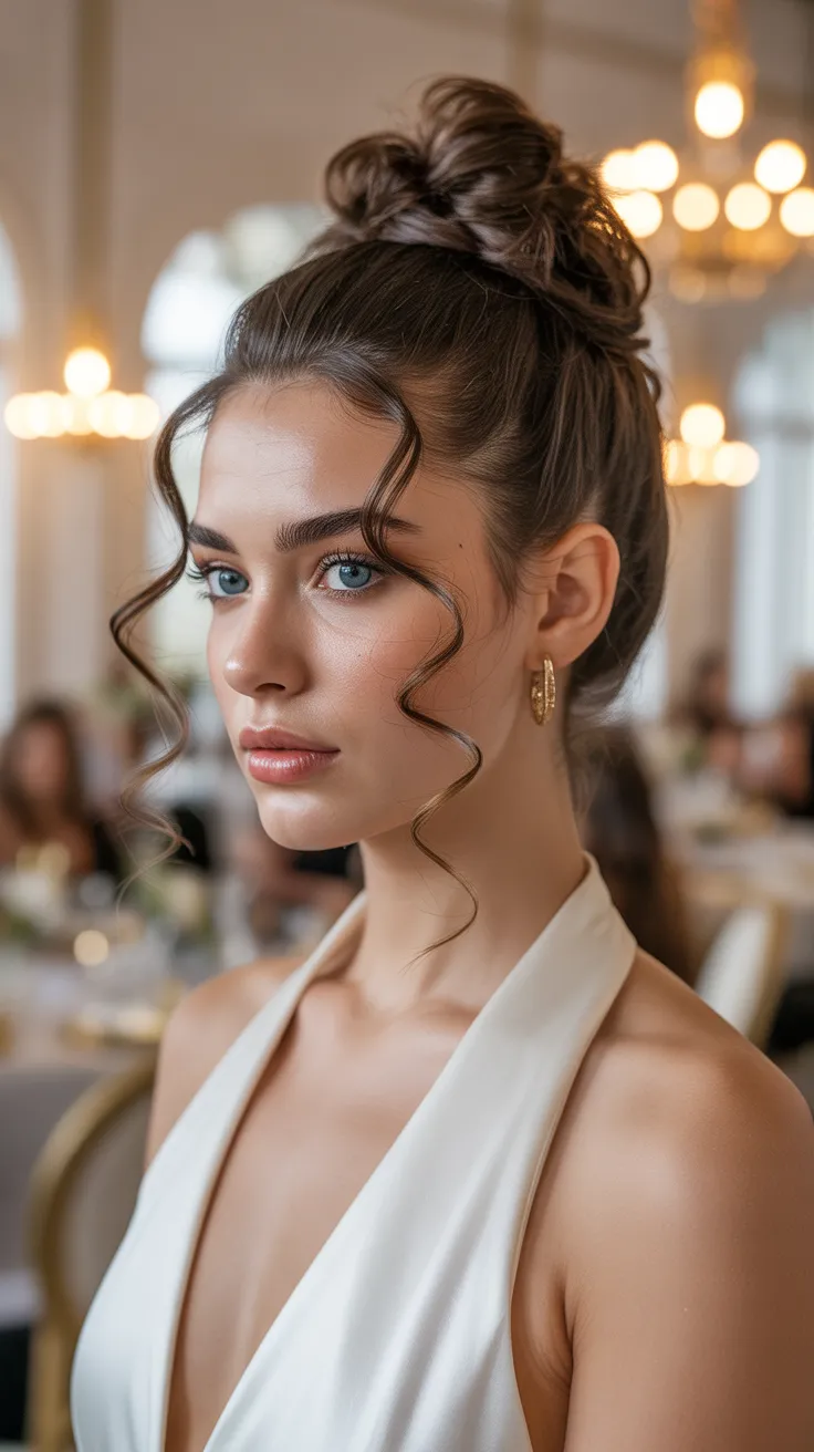 6. High Bun Hairstyle With Curled Face Pieces