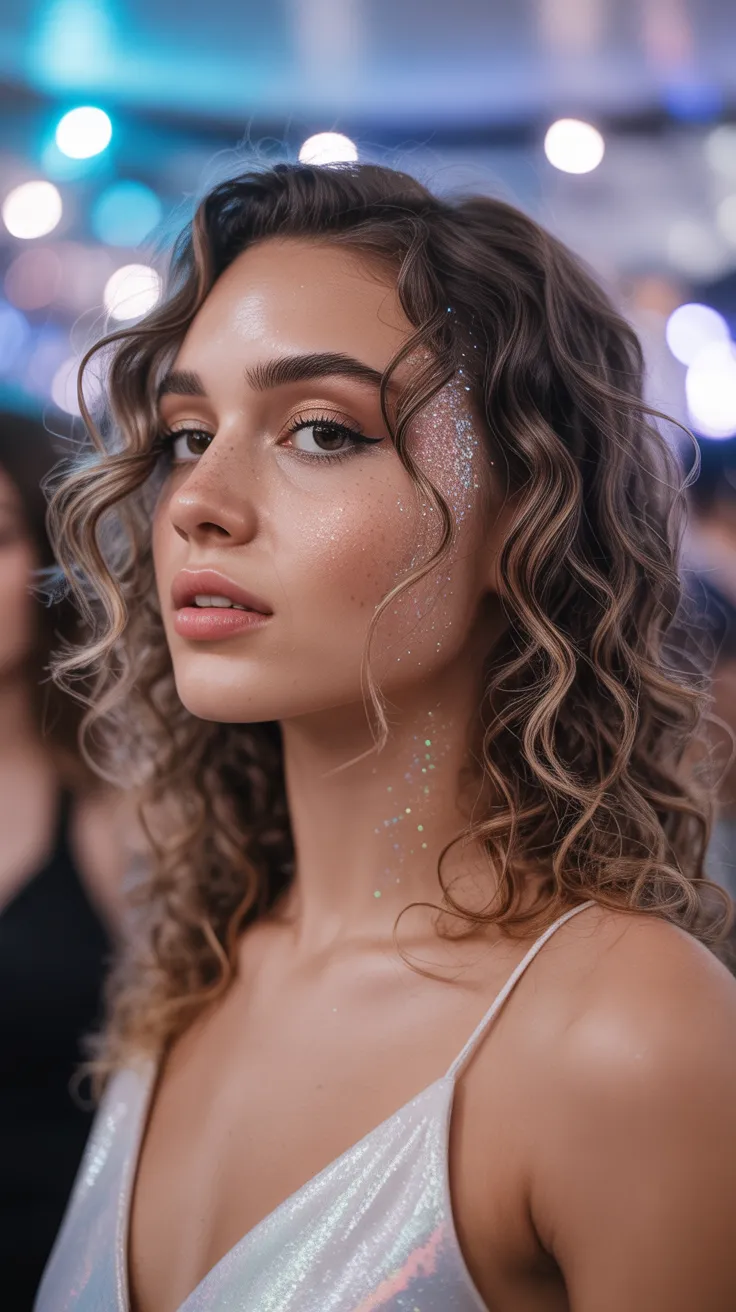 7. Curly Side Part Hair With Glitter Roots