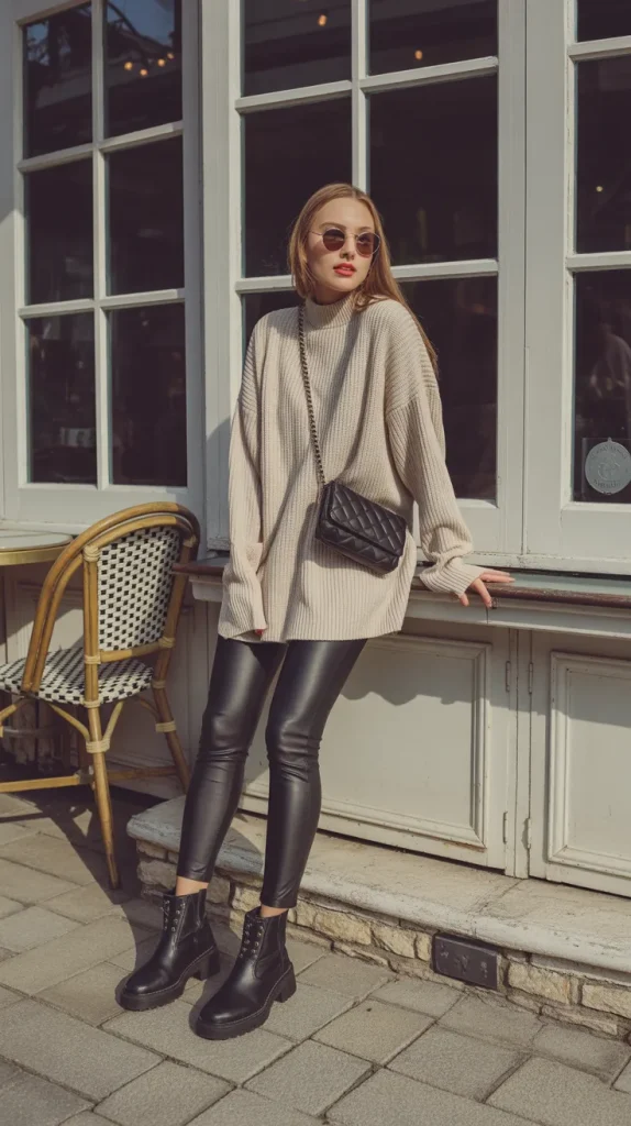 12. Black Leggings with Oversized Knit Sweater 🍂