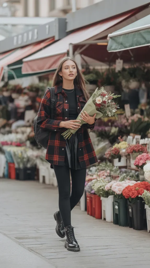 Shackets + leggings = match made in heaven. Pair black leggings with a plaid shacket, combat boots, and a mini structured backpack. It’s trendy, cozy, and perfect for transitional weather. This is the kind of casual chic outfit that works for both daytime and evenings. Ever notice how plaid makes everything look intentional? Yep, it’s the secret sauce here.