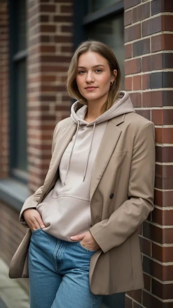 Layering a neutral blazer over a hoodie and jeans adds instant cool-girl street style to your wardrobe.