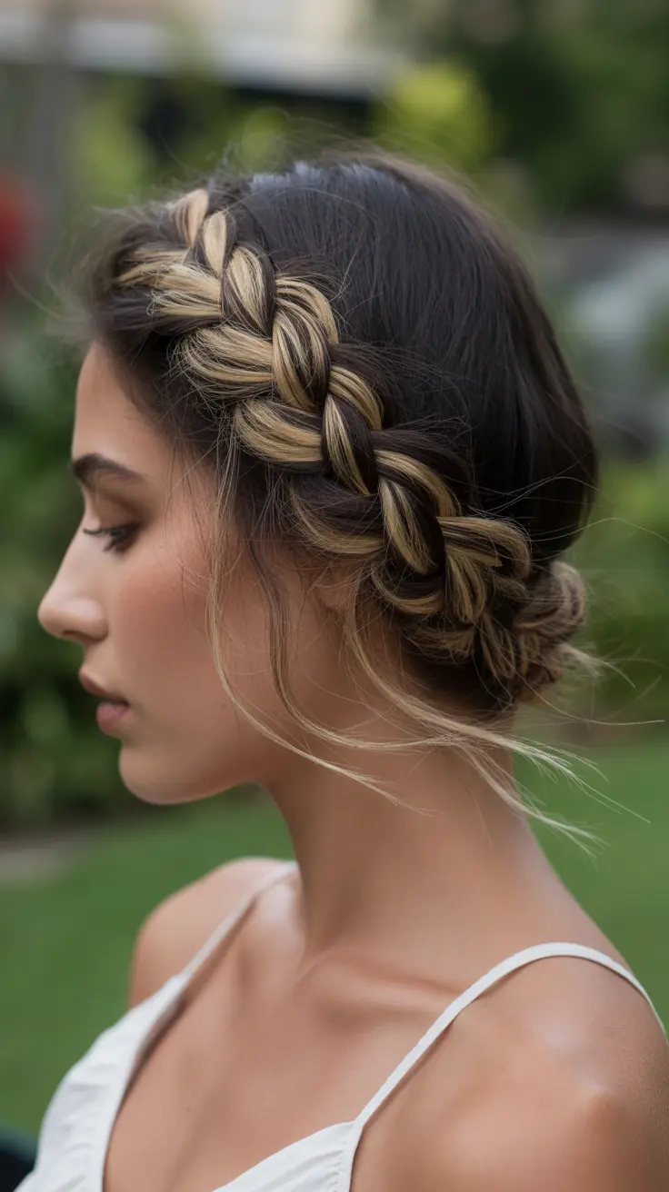12. Braided Crown With Blonde Highlights On Dark Hair