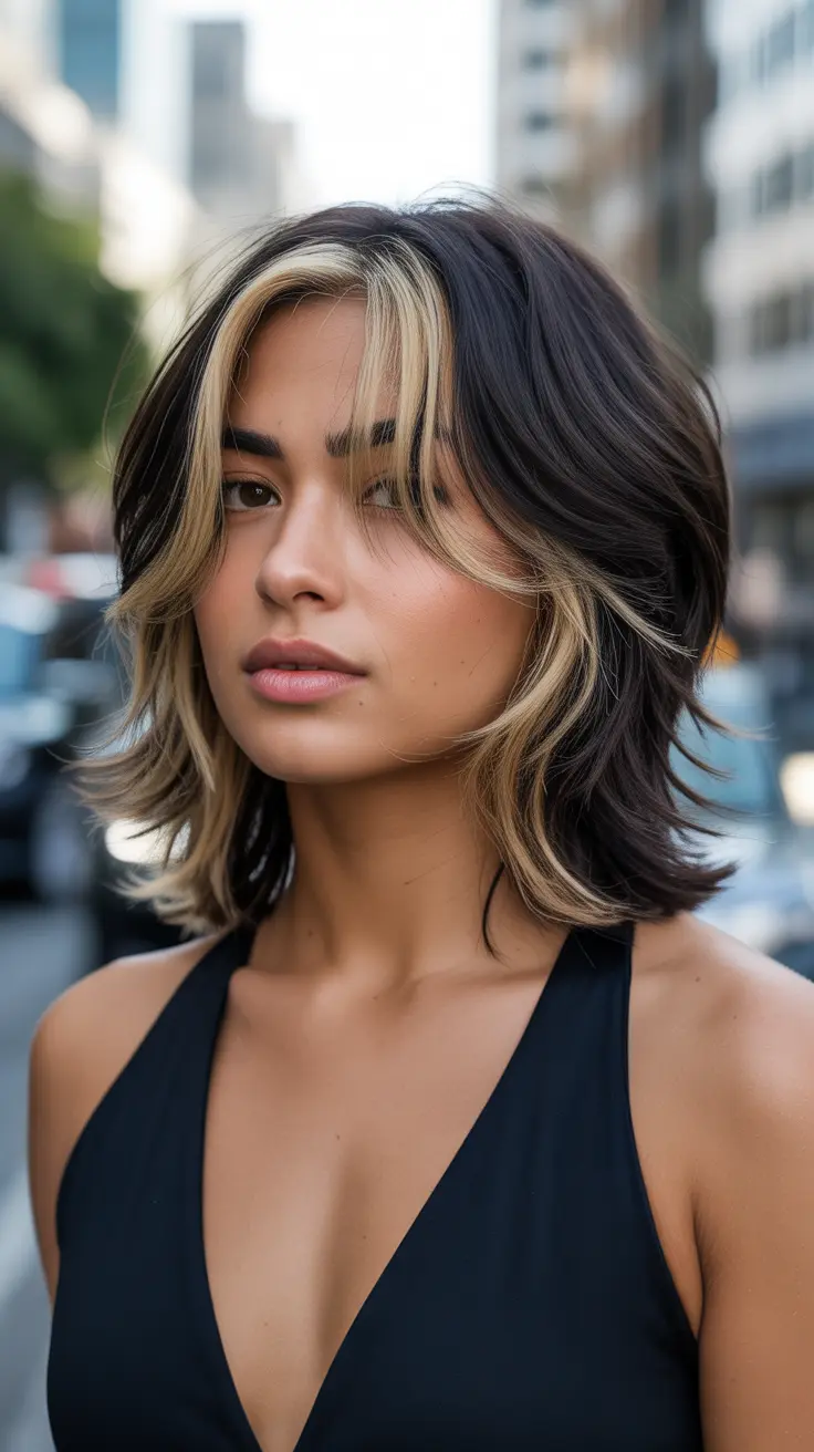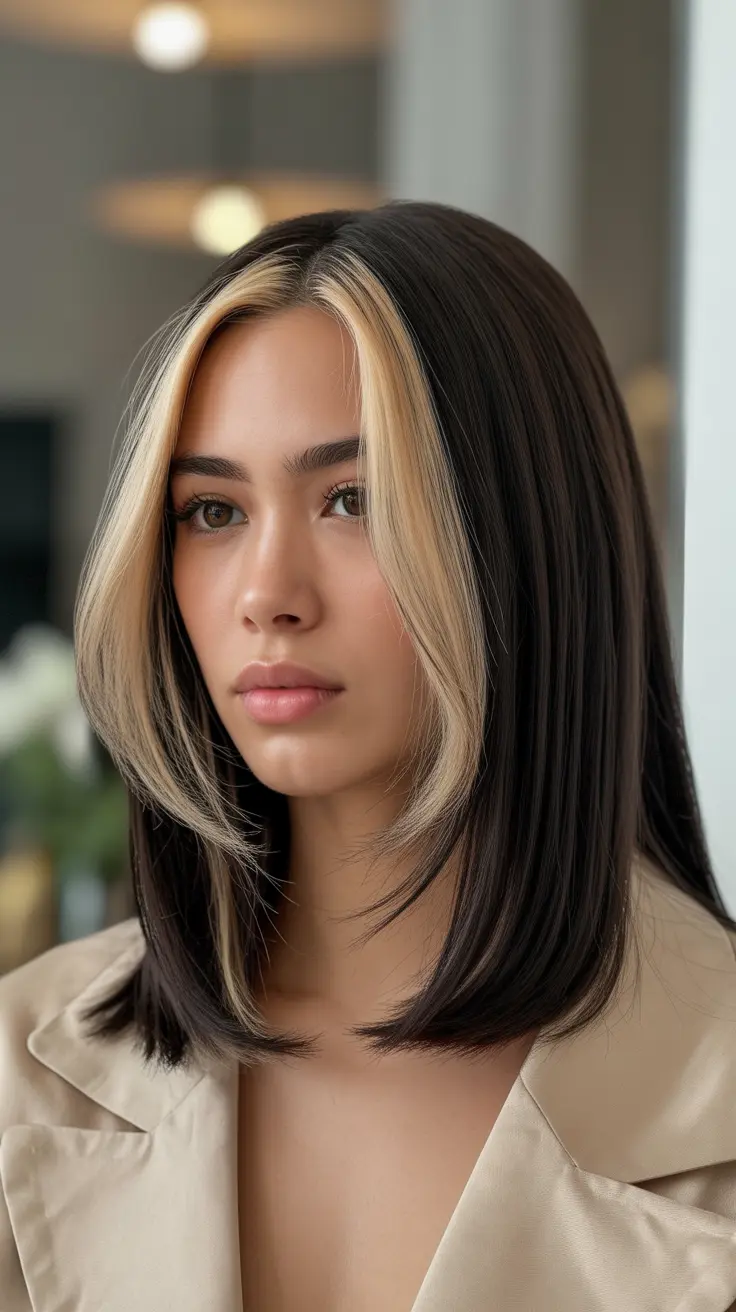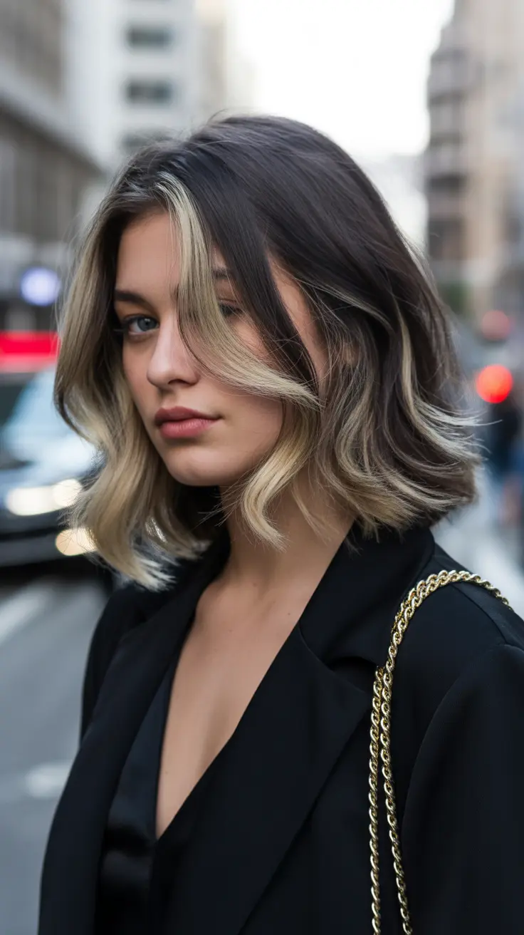If you’re looking for dark hair inspo, this sleek lob is a fantastic option. The blend of dark hair with blonde highlights creates a fresh and modern vibe that many will admire. Whether you’re considering a subtle touch or bold streaks, this hairstyle can be tailored to fit your personal style.