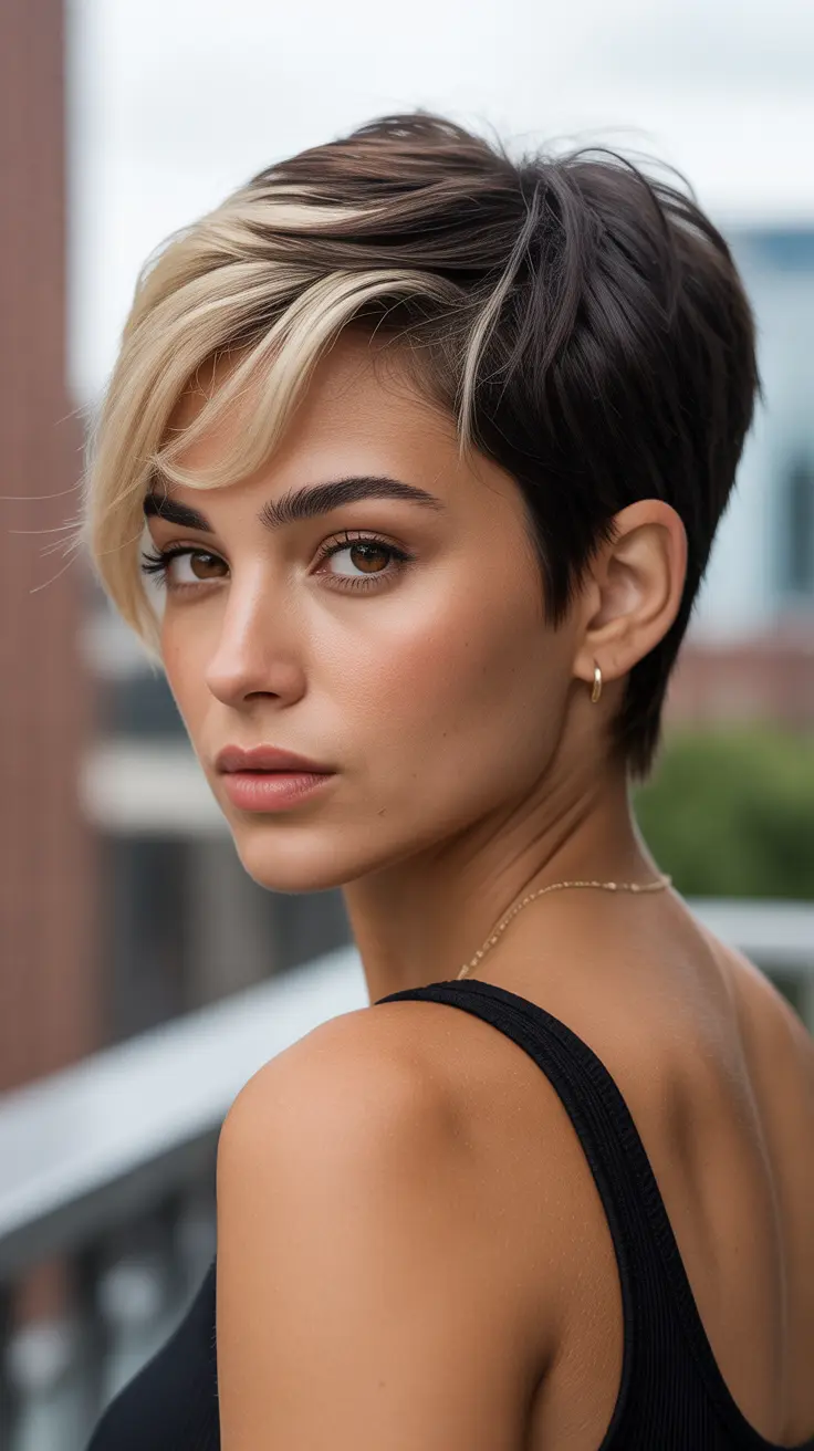 9. Pixie Cut With Blonde Highlights On Dark Hair