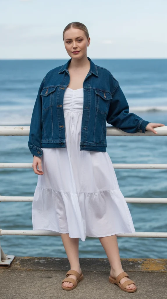 A dark-wash denim jacket over a crisp white sundress is fresh and timeless. This pairing works just as well for spring picnics as it does for late summer evenings.