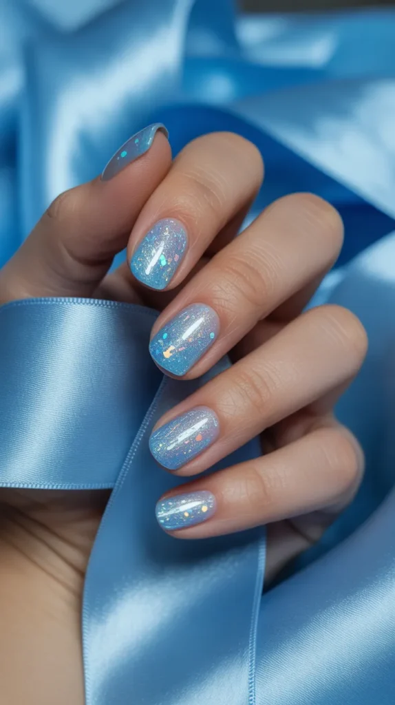❄️ Add shimmer or chrome: Blue nails love sparkle think icy finishes or silver flakes.