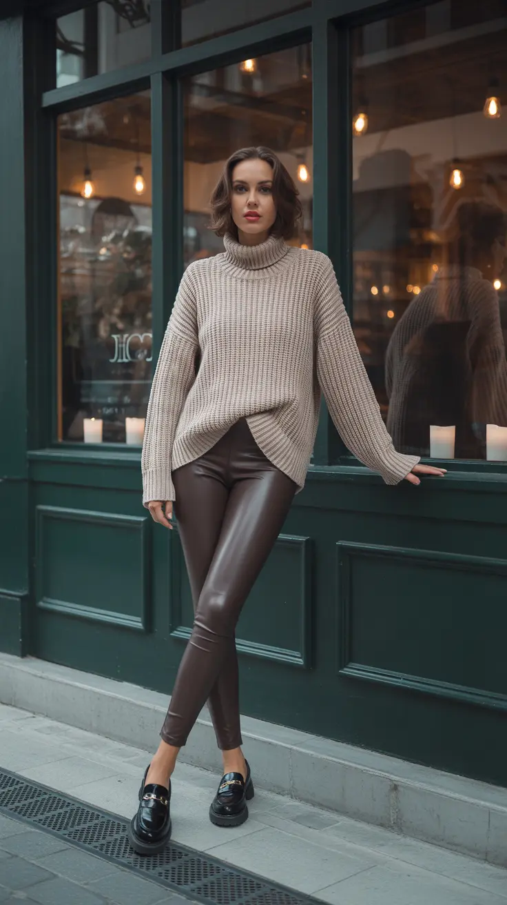 The warm, muted tones of this outfit make it ideal for autumn. You can easily dress it up with a cute bag or keep it casual with sneakers. This outfit is all about comfort without sacrificing style, making it a great choice for everyday fall fashion.