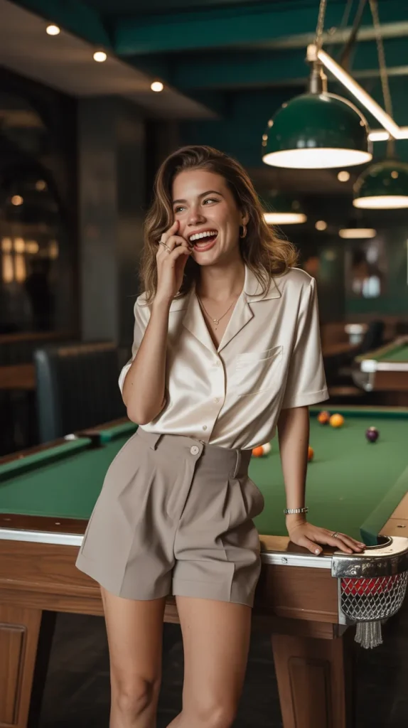 High-waist tailored shorts paired with a silky blouse make for a fun and stylish night out look. Add wedges or heeled sandals to elevate it just enough. Imagine laughing with friends at a pool table lounge with dim lighting this outfit feels right at home. 🎱 Bold earrings can add flair, while a crossbody bag keeps things relaxed. It’s a chic alternative to dresses and skirts that still feels dressy enough for a night out.