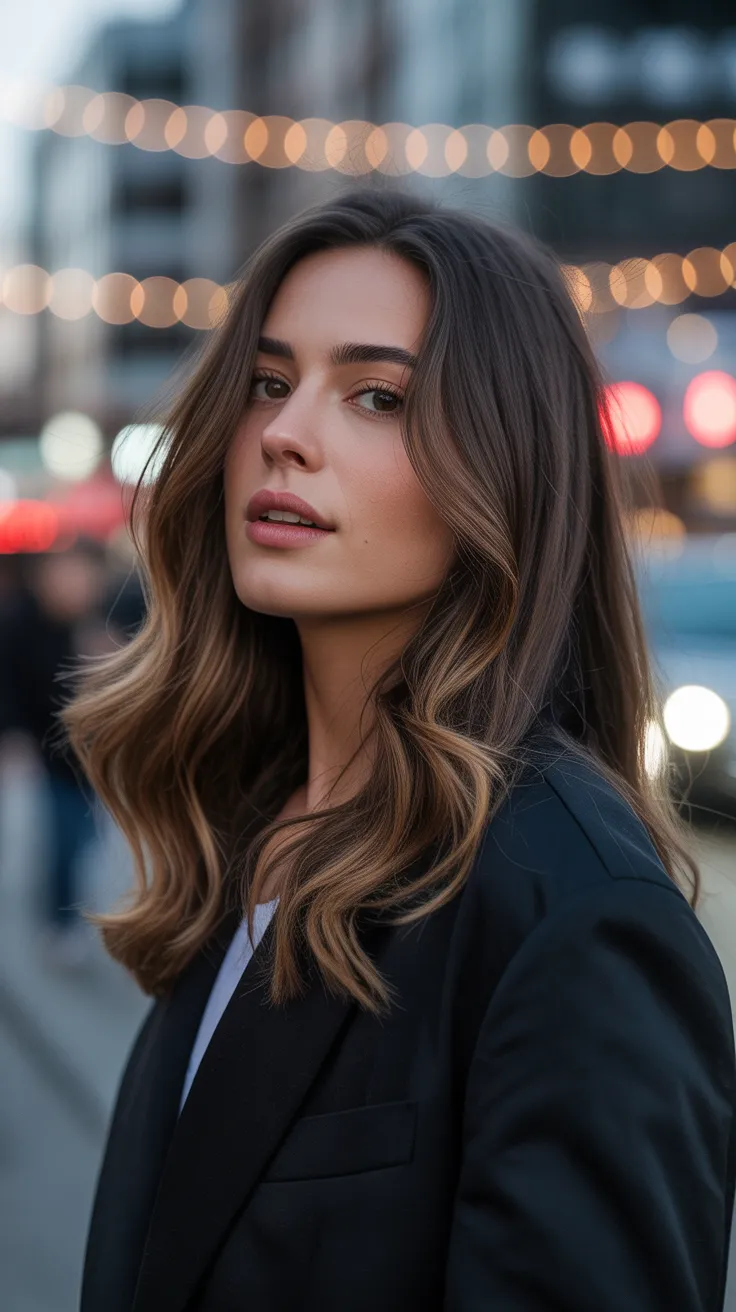 The straight texture enhances the dimensional hair color, allowing the light to reflect beautifully off the strands. This look is perfect for those who want a polished and sophisticated vibe. It’s a great way to show off balayage ideas, where lighter highlights blend seamlessly into the deeper cinnamon base.