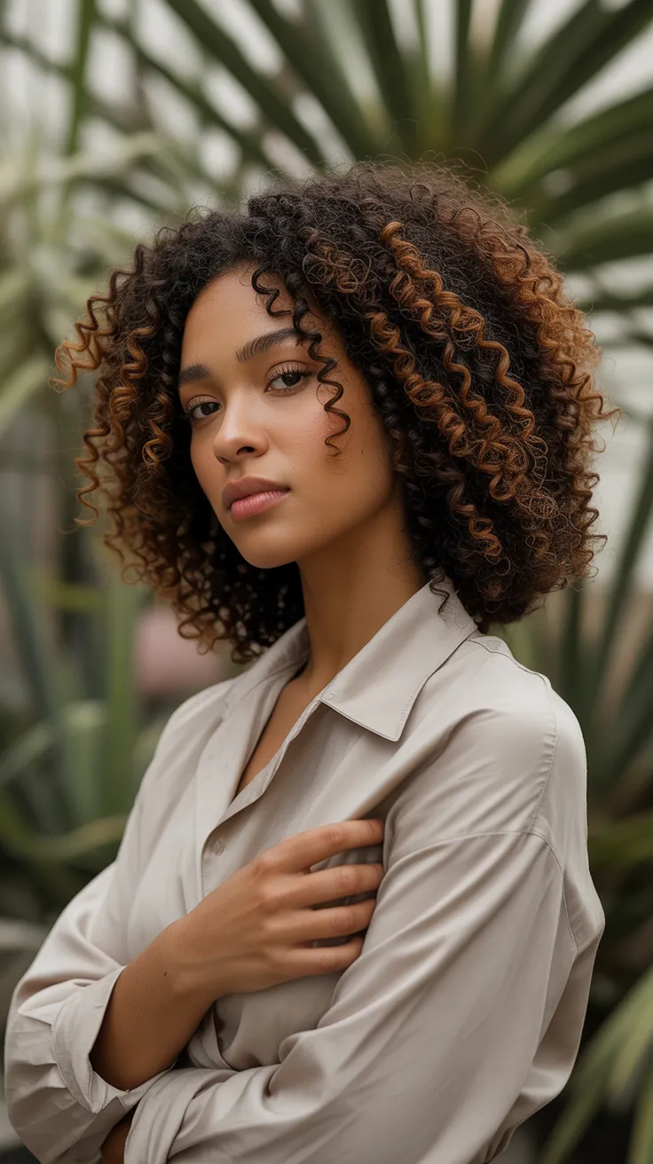 In the image, you can see how the soft curls frame the face, enhancing the overall appearance. The warm hair tones complement the skin tone perfectly, creating a harmonious look. This style is not just about color; it’s about embracing your natural texture while adding a fun twist.