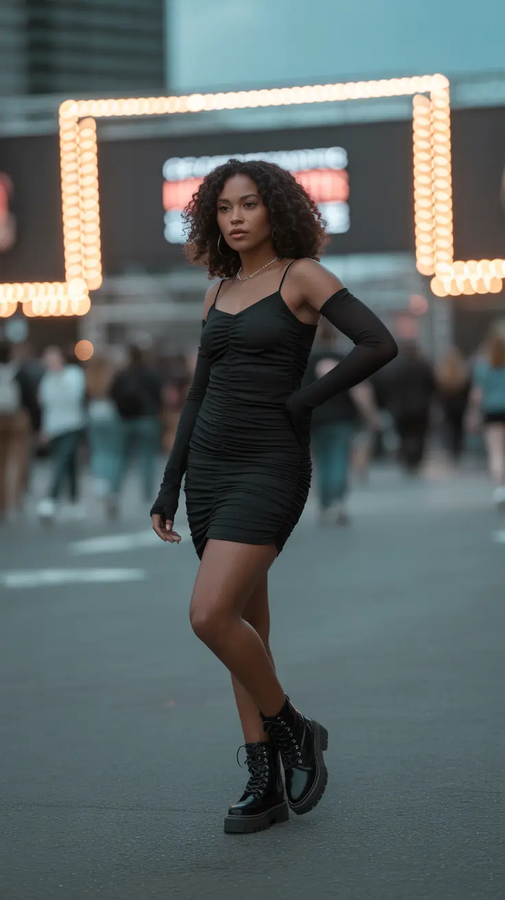 A mini dress paired with combat boots is a bold choice that screams confidence. This look is perfect for concerts, where you want to stand out while staying comfortable. The mini dress offers a sleek silhouette, while the combat boots add an edgy vibe.