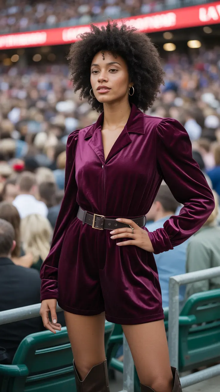 The velvet romper is a standout choice for any concert. Its rich texture and bold color make it a trendy look that grabs attention. This outfit is perfect for Black women who want to express their style while staying comfortable.