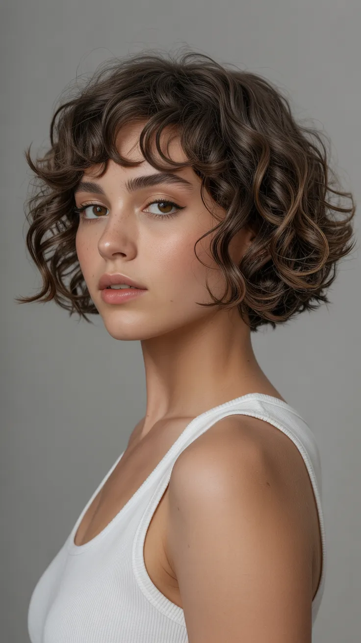 The curly shag cut with curtain bangs is a fun and playful style that adds personality to short curly hair. This look combines texture and movement, making it perfect for those who want to embrace their curls. It’s a great choice for anyone looking for trendy hairdos for curly hair that stand out.