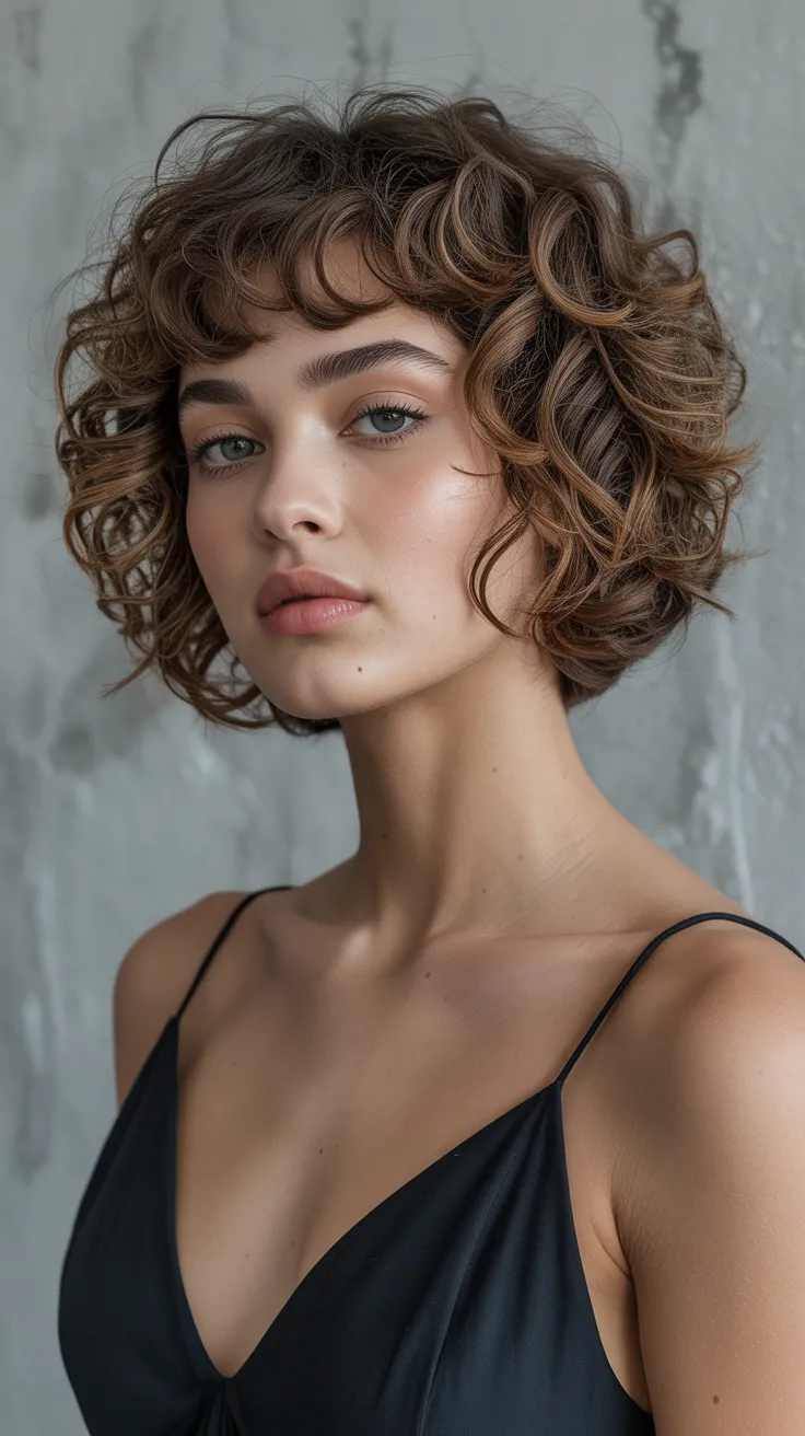 This auburn curly cut with layered bangs is a fun choice for anyone wanting to rock short curly hair. The vibrant color adds a playful touch, while the layers give the curls a bouncy, textured look. It’s a perfect example of how hairdos for curly hair can be both stylish and full of personality!