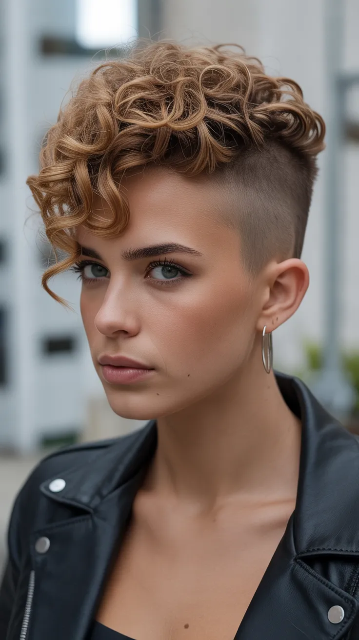 The curly faux hawk with shaved sides is a bold choice for anyone wanting to showcase their personality. This style combines the fun of short curly hair with an edgy twist, making it perfect for those who love to stand out. It’s a great option among curly pixie hairstyles, offering both texture and flair.
