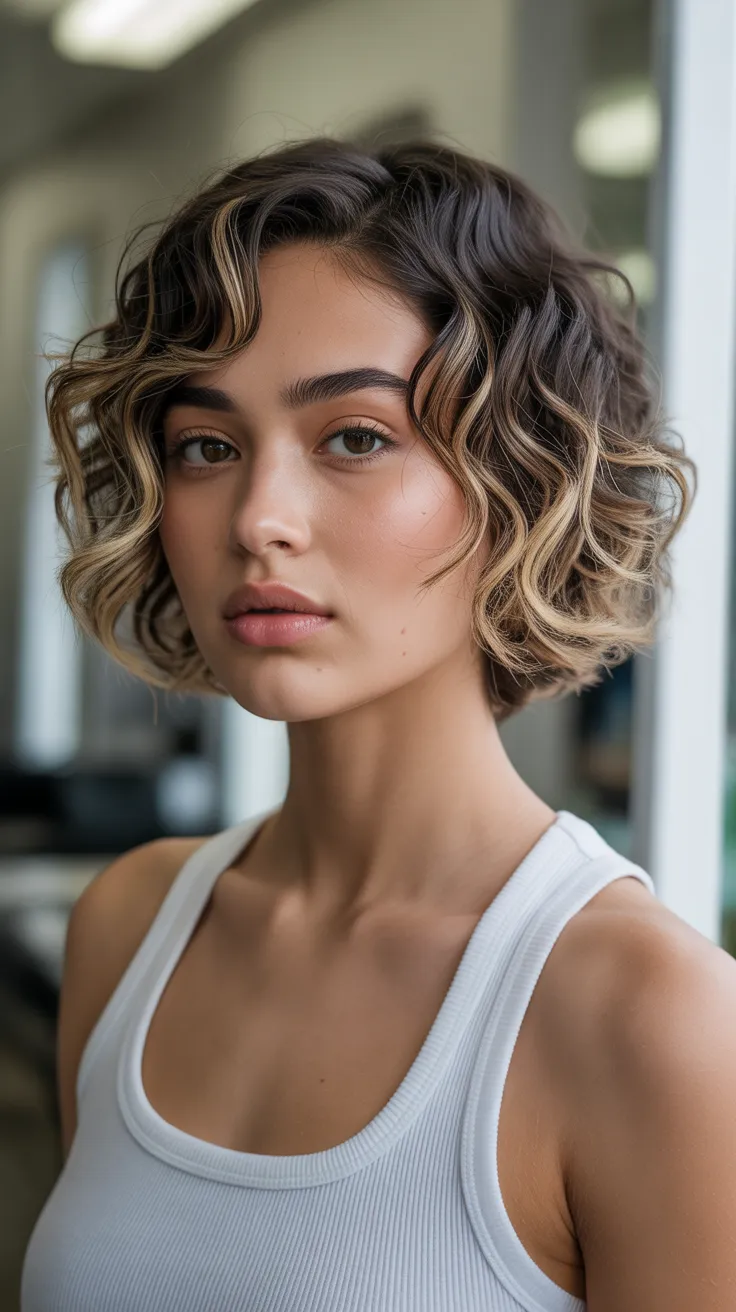 This chin-length curly bob is a fun and stylish choice for anyone with curly short hair. The ombre tips add a playful twist, making it perfect for those who want to express their personality. It’s a great option among hairdos for curly hair, offering both texture and flair.