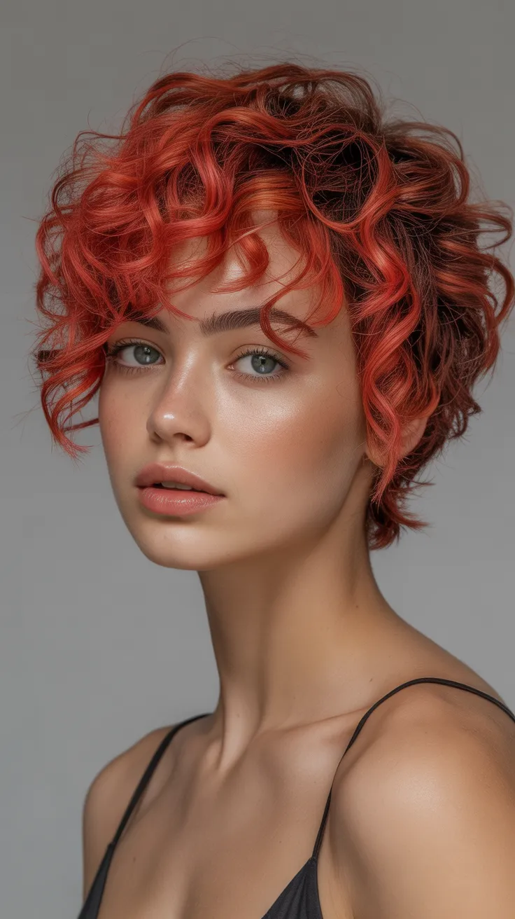This red curly pixie is a fun and bold choice for anyone looking to shake things up. The tousled texture adds a playful vibe, making it perfect for showing off your personality. It’s a fantastic option among curly short hair looks, especially for those who love curly queer hairstyles.