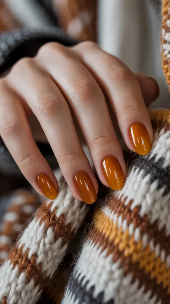 15. Glossy Amber Nails
