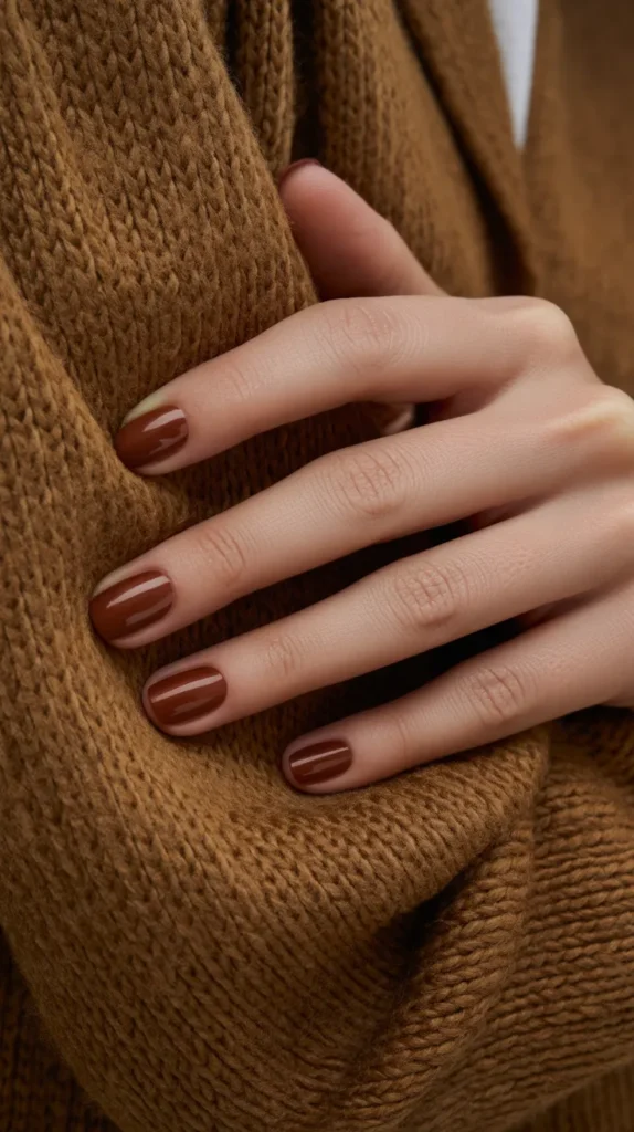 Chestnut brown is the ultimate autumn staple, and it looks amazing with a glossy finish. These nails are simple, classy, and versatile basically the kind of manicure you can never go wrong with. They pair beautifully with fall neutrals like cream and beige, but also complement bolder outfits. The best part? Theyβre timeless enough to carry you from autumn into winter. A chic everyday option for anyone who loves cute fall nails. π