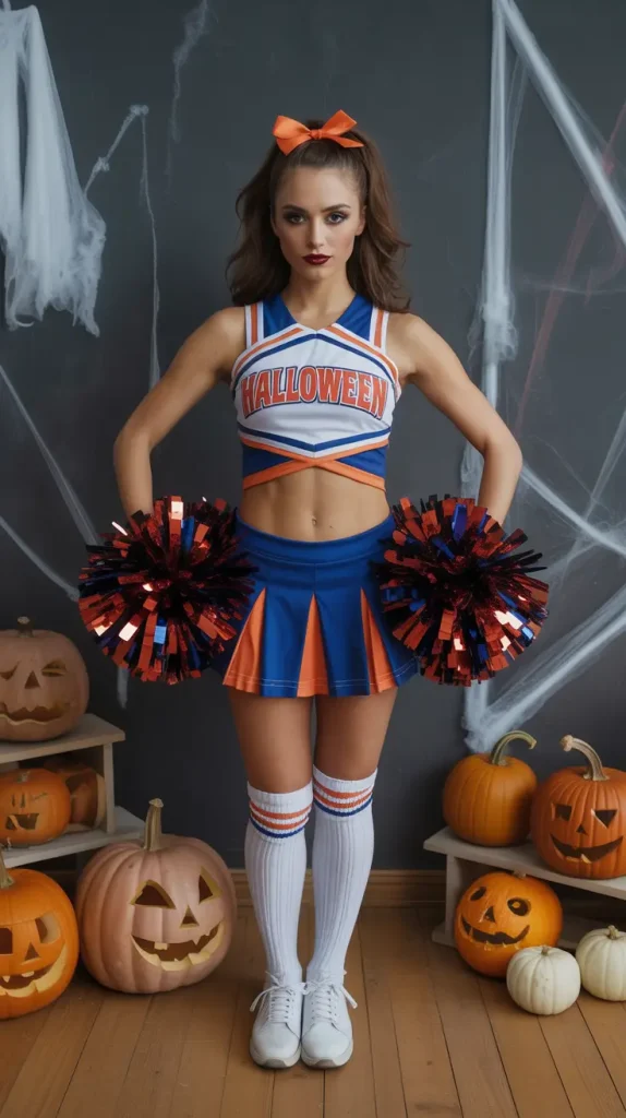 Nothing says energy and fun like a cheerleader look. A pleated mini skirt, cropped top, and sparkly pom-poms are all you need. 📣 Add a high ponytail with a bow for extra cuteness. This is one of the easiest cute Halloween costumes because it’s recognizable and full of playful energy. You can style it as sweet, sassy, or spooky with zombie makeup if you want a twist. Either way, it’s a festive and stylish option for Halloween night.