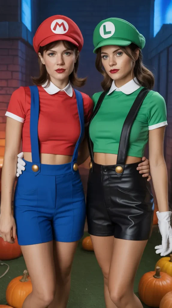 If you’re looking for unique Halloween costumes, Mario and Luigi get a stylish makeover here. Instead of the usual overalls, you and your bestie can rock mini skirts, crop tops, and colorful caps. 🍄 Add suspenders, boots, and maybe even some glittery accents to make it girly and bold. These duo costume ideas are fun, nostalgic, and instantly recognizable. They’re playful, easy to DIY, and perfect for friends who love a little cosplay fun. Plus, they’re cute enough to keep the vibe festive all night long.