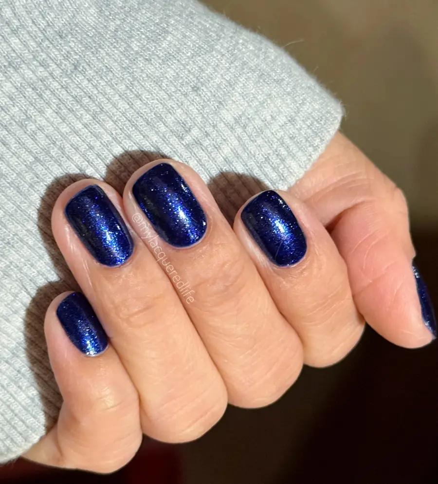 13. Deep Navy Blue Shimmer Nails With Subtle Sparkle