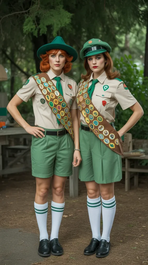 If you want funny and nostalgic, this duo is adorable. Matching scout uniforms, badges, and sashes bring all the retro vibes. It’s playful, lighthearted, and definitely not your average Halloween duo costume. Honestly, people will either laugh at the reference or compliment how cute it is. Either way, you win. 🎖️