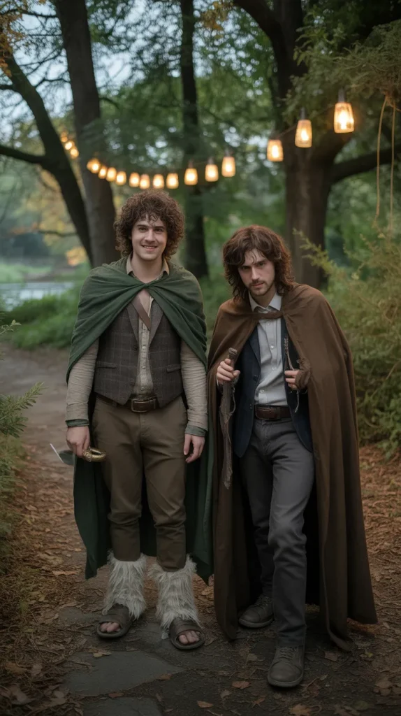 For the LOTR fans, this is a cute and nerdy win. Cloaks, curly wigs, fake hairy feet, and the One Ring are all you need. It’s one of those cute Halloween costumes for best friends that feels both funny and magical. If you’ve got a friend who’s always up for adventure, this duo is basically perfect. 🌿