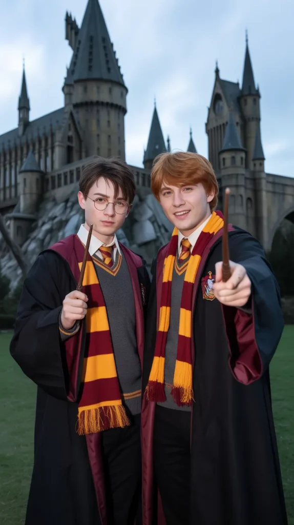 Step into the wizarding world with two of the most iconic best friends in pop culture. Robes, Gryffindor scarves, and wands instantly create a magical vibe. This one’s great because you don’t need to overcomplicate it the Hogwarts uniforms do all the talking. Want extra flair? Add a spell book prop or fake owl. It’s the perfect Halloween duo costume if you’re after a magical night with a dash of nostalgia. ⚡